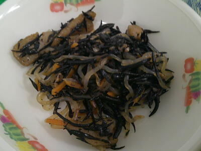 「ひじきの炒り煮」は、ミネラルたっぷりのひじきを使い、だし汁でじっくり煮ましたキラキラひじきは、海水に含まれているカルシウムや鉄分などのミネラルをたっぷり吸収しながら育っているので栄養バツグン王冠だし汁やしょう油、砂糖で味付けをした、やさしい味の煮物ができ上りました花丸ご飯とも相性がよいので、もりもり食べて午後も元気に過ごしましょう興奮・ヤッター!