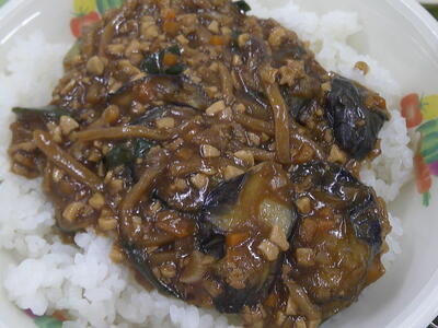 茄子は90%が水分で、体の内側から冷やす作用がありますキラキラまた、皮の色素は「ナスニン」というポリフェノールの一種で、抗酸化作用があり、生活習慣病を予防する働きがあります花丸「マーボー茄子丼」をもりもり食べて、健康な体をつくりましょう了解