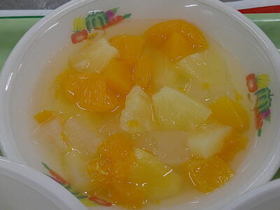 デザートの「フルーツの和梨ジュレ和え」は、今が旬の「梨」をつかった和梨ゼリーを他のフルーツと特製シロップと和えましたキラキラ千葉県は、梨の生産が盛んで、全国1位を誇ります王冠やさしい梨の風味を味わいながら食べて、午後も元気に過ごしましょう興奮・ヤッター!