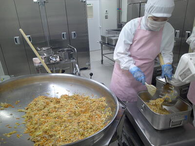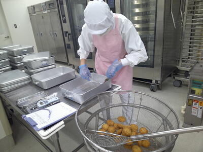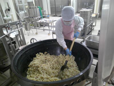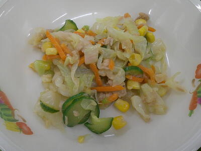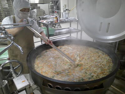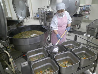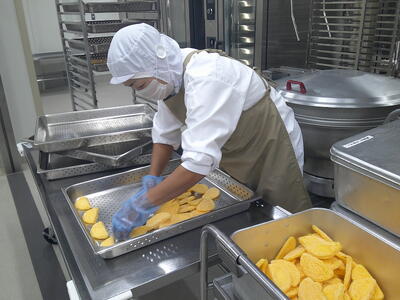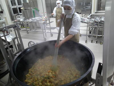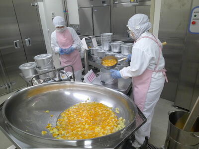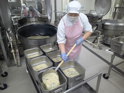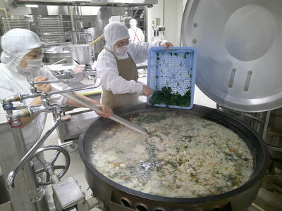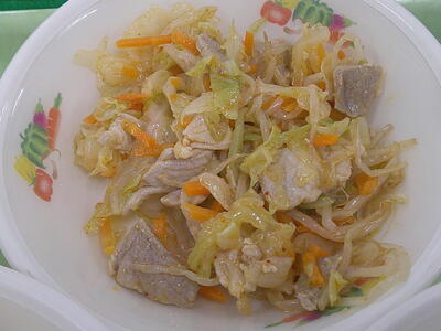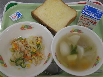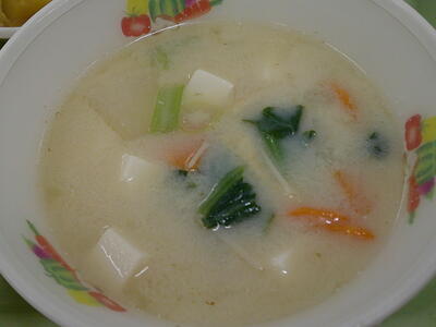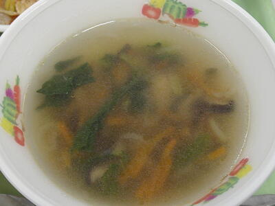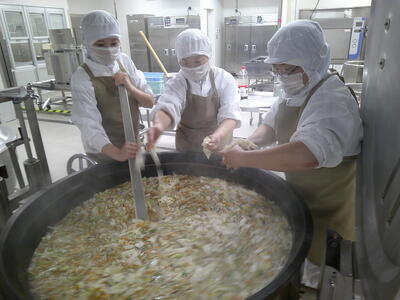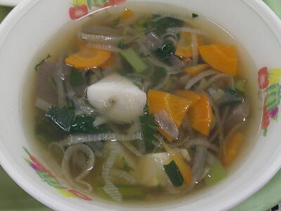 給食では、やわらかい豚肩ロースを使い、玉ねぎやじゃが芋、人参を大きめにカットして煮込んでいますキラキラ仕上げに白ワインを加え、風味豊かな「ポトフ」に仕上がりました了解「ポトフ」は、ビタミンやミネラル、食物せんいの他に、水分補給できるので、「ポトフ」をたっぷり食べて、午後も元気に過ごしましょう興奮・ヤッター!