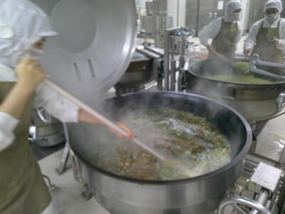 今日は、創業100年の歴史がある老舗「桃屋」さんの人気商品3種類を使った「桃屋給食」キラキラ本日は、桃屋の「きざみしょうが」と「キムチの素」、「味付搾菜」の3つを使用して給食に取り入れました花丸