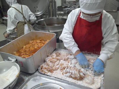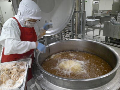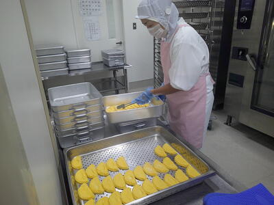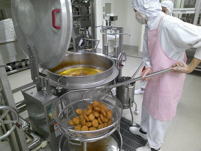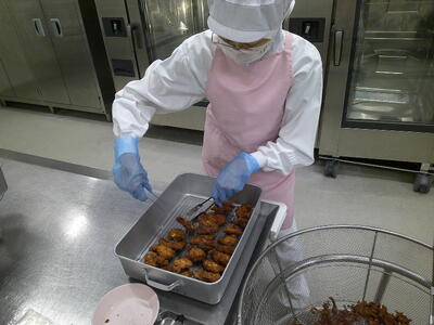 「チキンカツ」は、塩麹に漬け込み、パン粉をまぶし、油でカリッと揚げました了解鶏肉に塩麹の風味が染みて、やわらかく、まわりはサクサクっとした食感に仕上がりました花丸ご飯のおかずになるので、もりもり食べて、午後も元気に過ごしましょう興奮・ヤッター!