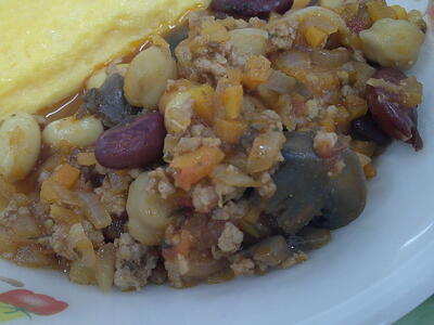 栄養バツグンの「チリコンカン」は、ひき肉と玉ねぎ、豆、トマトで煮込んだスパイシーなメキシコ料理了解給食では、玉ねぎをよく炒め、甘みを引き出していますキラキラ豆は、植物の種なので、栄養バランスが整っているスーパーフード王冠大豆と金時豆、ひよこ豆の3種類を加えて、じっくり煮込みました了解赤ワインやとろけるチーズも加え、風味豊かな、コクのある「チリコンカン」ができ上がりましたキラキラ食パンにチリコンカンをのせて食べても美味しいので、よくかんで、味わって食べましょう興奮・ヤッター!