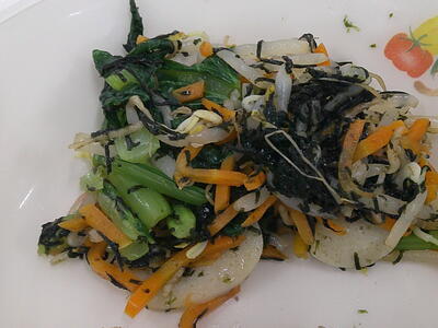 【野菜から出てくる水分をしっかり取り、焼きのりをたっぷりと和えましたキラキラ