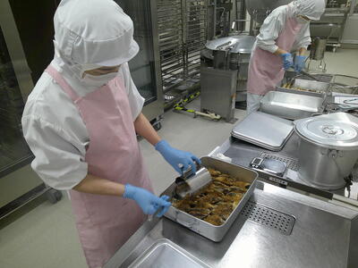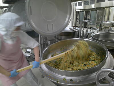 今日も残暑がきびしく、猛暑が続いています・・汗・焦る水分補給を小まめにとり、熱中症にならないように気をつけましょう注意調理員さんたちも2学期給食開始の1週間前ごろから給食室のお掃除をしたり、食器や食缶の確認をしたり、準備を始めてくださっていましたキラキラ給食室の中も30℃近くあり、とても暑いですが、水分補給をしながら美味しい給食を作ってくださっていますキラキラ