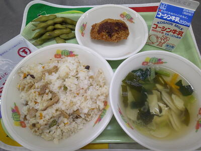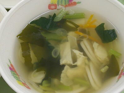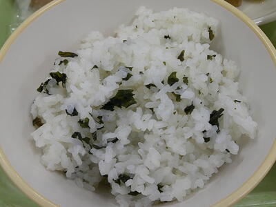 今日は、さっぱり塩味の「わかめご飯」ですキラキラシンプルな味付けですが、海藻のわかめに含まれたビタミンやミネラルは、髪や爪、肌の健康を保ちます了解また、腸内の環境を整える食物繊維も多く含まれ、お腹の調子を整えてくれますキラキラ「わかめご飯」をもりもり食べて、午前中に使ったエネルギーを補給しましょう笑う