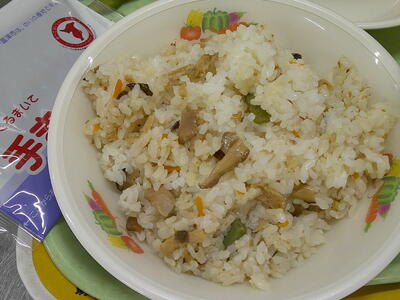 今日は、もちもち食感の「鶏ごぼうおこわ」ですキラキラ「おこわ」は、もち米を使って炊いたご飯のこと花丸給食では、もち米とうるち米を合わせ、しょう油とお酒を一緒に炊き上げ、風味をプラスしました了解具材は、鶏肉とささがきにしたごぼうを一緒に煮て、炊きたてのおこわにさっくり混ぜ合わせましたピース