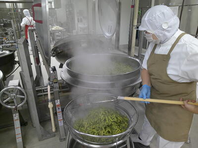 調理員さんたちが枝豆を洗い、おいしく塩茹でしてくださいました了解収穫してすぐにゆでるのが美味しさのポイントです了解生産者の中村さんや3年生やけやき・こぶし学級の皆さん、調理員さんたちに感謝ハートしながら、新鮮な枝豆の味と香りを味わいながら食べましょう興奮・ヤッター!