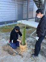 この門松は、飯塚先生、鈴木先生、寶耒先生、中島先生、池田先生が作ったものです。