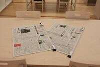 生徒の皆さんはたくさんの場所で新聞を手に取り、