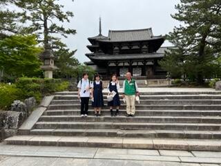 五重塔・夢殿など国宝建築を、目の当たりにし、日本初の世界遺産である法隆寺に感動していました。