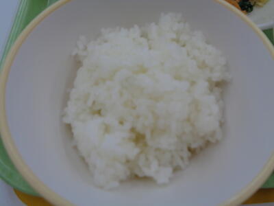 給食では、地産地消を推進し、お米は、流山産コシヒカリを100%使用しています江戸川沿いの田んぼで育った、とてもおいしいお米です