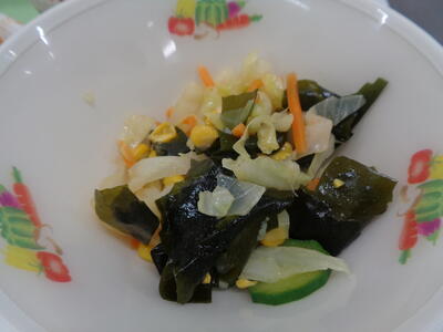 「海藻サラダ」は、今が旬の春キャベツに人参、きゅうり、コーンと海藻たちも加えたので、ビタミンやミネラル、食物せんいがたっぷり摂れます!