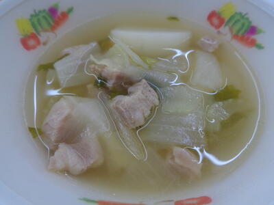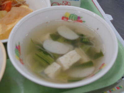 若竹汁は今年の新竹の子を使用した汁物新竹の子は、とてもやわらかく、おいしいので、春の風味を味わいながら食べましょう。昨日は、どこのクラスもたくさん食べていて食缶が大変きれいでした
