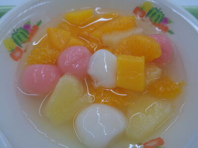 『牛乳 パエリア 春野菜のポトフ 白玉フルーツポンチ』