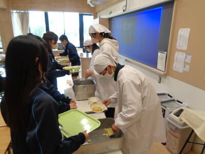 【給食当番さん、クラスのみんなのために一生懸命、配膳してくれました