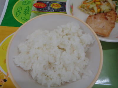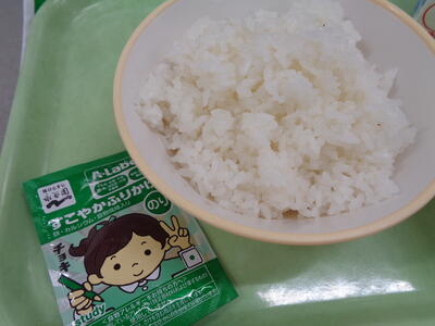 給食では、地産地消を推進し、お米は、流山産コシヒカリを100%使用しています江戸川沿いの田んぼで育った、とてもおいしいお米です