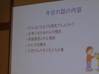 がんとはどのような病気なのか、予防法について、早期発見の大切さなどわかりやすくお話してくださいました。