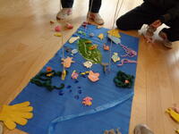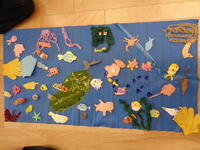 一か月かけて、紙粘土で海の生き物を制作してきました。