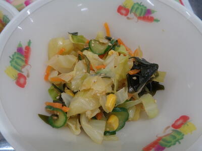 「海藻サラダ」は、今が旬の春キャベツに人参、きゅうり、コーンと海藻たちも加えたので、ビタミンやミネラル、食物せんいがたっぷり摂れます!