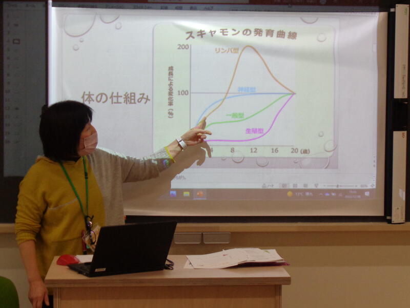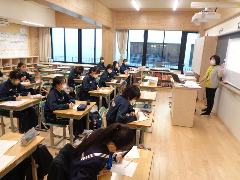先日、本校栄養教諭の宮本より、部活動の時間にバレー部選手へ「食育講座」を開いてもらいました。