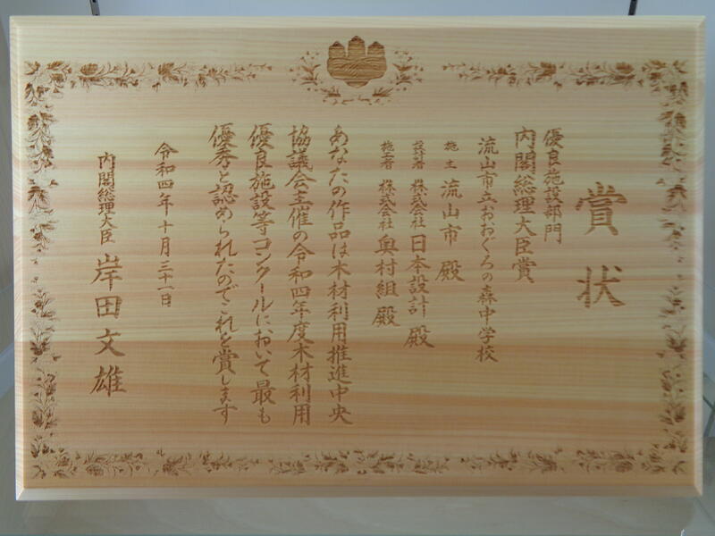 内閣総理大臣賞受賞!木製の表彰状が届きました!