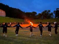 だんだんと日も落ちてくる中、吹奏楽部による「遠き山に日は落ちて」の演奏から始まりました。