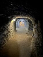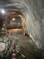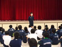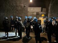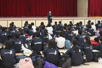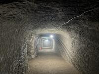 赤山地下壕は、合計した長さが約1.6kmあります。アメリカ軍の空襲が激しくなった太平洋戦争の終りの頃、この赤山地下壕が、館山海軍航空隊の防空壕として使われていました。生徒たちは各学級2グループに分かれ、ガイドさんの説明を受けながら見学しました。