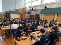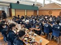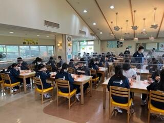 学級ごとに分かれ、お弁当をいただきます。