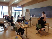 本校の研究主題は「ICTを活用した授業展開」ということで、どちらの授業でも電子黒板やPCを活用した授業展開がみられました。また、1組の授業では本校の特徴でもある、ALR(アクティブラーニングルーム)を使用した授業が展開されました。どちらの授業も活発に生徒同士が関わり、学びが深まる時間となりました。