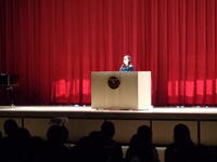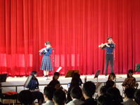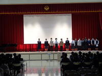 英語スピーチコンテストの発表や学校プロモーションビデオの披露、文化部の発表、生徒会、全校委員長の任命式を行いました。