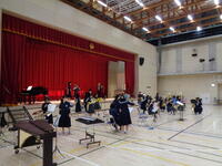11月13日(日)おおぐろの森小学校の体育館で、敬老の集いが行われ、吹奏楽部が出演しました。地域のみなさまに聴いていただくことは今回が初めてで、練習にも熱が入っていました。唱歌や昭和の名曲など、およそ30分のステージで演奏を披露しました。司会、進行の曲紹介にうなづいてくださったり、笑顔が広がったりと、大好評、拍手喝采のステージとなり、アンコールまでいただきました。最後は会場の全員で「ふるさと」を体育館いっぱいに響き渡らせ、そこには心温まる空間が広がっていました。