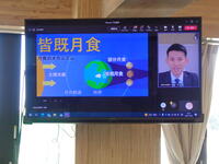 ライブ配信では、坂本教諭が作成したパワーポイント資料を流しながら、皆既月食と月に天王星が隠される天王星食についてとてもわかりやすいミニオンライン授業が展開されました。