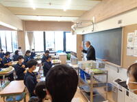 給食の配膳後には、御協力いただいた、ホテルポートプラザちばの伹野支配人、細井総料理長、目黒和食料理長、渡邊洋菓子責任者の方々に2年生の各クラスで質問にも答えていただきました。