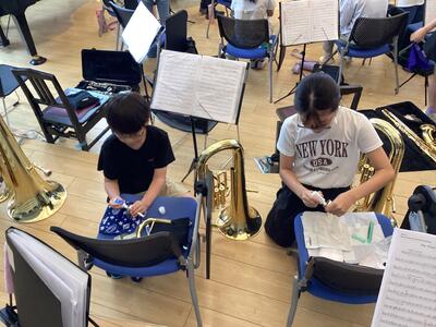 7/25(金)は、夏休み前半の練習最終日ということで、楽器のお手入れをしていました。道具や楽器を大切にすることは、よい演奏をすることにもつながります。これからも、10月の市内音楽発表会に向けてがんばってほしいと思います。
