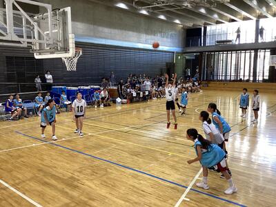 4回目に紹介するのは、3回目に続き部活動指導です。夏休み中は、10月中旬の市内音楽発表会などに向けて吹奏楽部と、10月下旬の市内ミニバスケットボール大会に向けてミニバスケットボール部が活動しています。「こんなに暑い中、バスケットボールを…?」と思った方がいるかもしれません。流山市内の小・中学校には、一昨年度体育館にエアコンが設置されました。そのため、夏休み中でも運動に適した環境の中でプレイすることが可能です!今回は、ミニバスケットボール部の活動の様子をお伝えします。