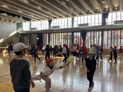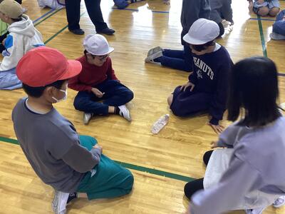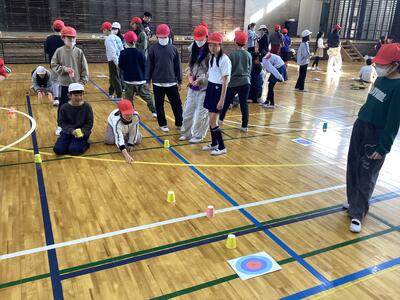 負けた人が勝ち、あいこになったらポーズなどといった多種多様なじゃんけん、スーパーボールを中に入れた風船を使った風船ラリー、紙コップとゴルフボールを使った紙コップカーリングなど、子どもたちにとっては遊び感覚の体験の中で様々なことを学ぶことができました。