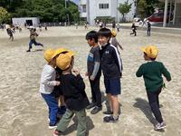 1年生の通常日課開始に伴い、業間休みや昼休みに一緒に遊ぶ6年生をたくさん見ることができました