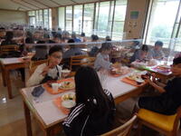 3名の職員(校長、教務、養護教諭)は到着の会でBグループをきみかめでお出迎え。