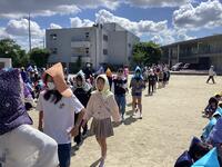 「大きな地震が発生した」という想定の下、第1回避難訓練を行いました事前に各学級で、一次避難と二次避難の仕方を確認しました