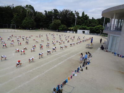 あとから助けに入る人(手前の人たち)は校庭を走ってから綱のところにかけつけています。