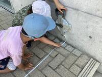 紙テープを使って、ホウセンカとひまわりの草丈調べを行いました「すごく大きくなっていてビックリしました!」などと言いながら、植物の成長に興味津々の子どもたち