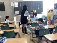 現在は「Hello!~あいさつをして友だちになろう~」の学習で、様々なアクティビティーを通して世界の国名やあいさつの言い方に慣れ親しんだり、それを用いて友だちとやり取りをしたりしています