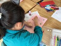 「1年生は、まだ漢字を習っていないから平仮名で書かないとね!」「1年生が好きそうなキャラクターが話しているように、吹き出しを使ってみようかな!」など、1年生に喜んでもらえるように、一人ひとりが工夫しながら一生懸命取り組んでいました