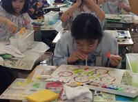 4年生最初の図工は「絵の具のぼうけん、楽しさ発見!」です。ストロー、ビー玉、歯ブラシ、金網、カップなど身近にあるものを使って、画用紙に模様をつけていきました!