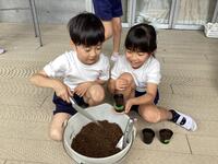 今回は、最初の段階となるたねまきを行いました「ホウセンカの種って、こんなに小さいんだね!」と、ビックリしていた子どもたち