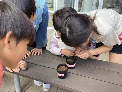 観察中には、種を教室の床に落としてしまい、クラスのみんなで大捜索するハプニングもありました