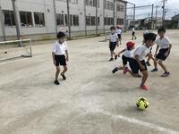 4,5,6年生混合のチームを作り、パスやドリブルなどの基礎練習からミニゲームを行っています。