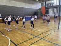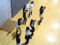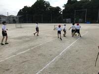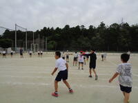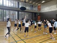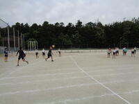 3学年で混合チームを作り活動しています。パスやシュートなどの基本的な技術から、実践的な試合まで行っています。みんなで上達することを目指しています。