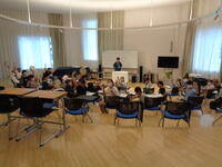 ブックトークを行っています。みんなで読みたいジャンルを決め、それにあったおすすめの本を紹介しあうという活動です。